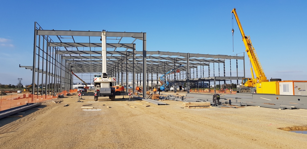 1000 tonnes de charpentes métalliques et 196 ossatures de portes sectionnelles auront été nécessaires pour sa réalisation.