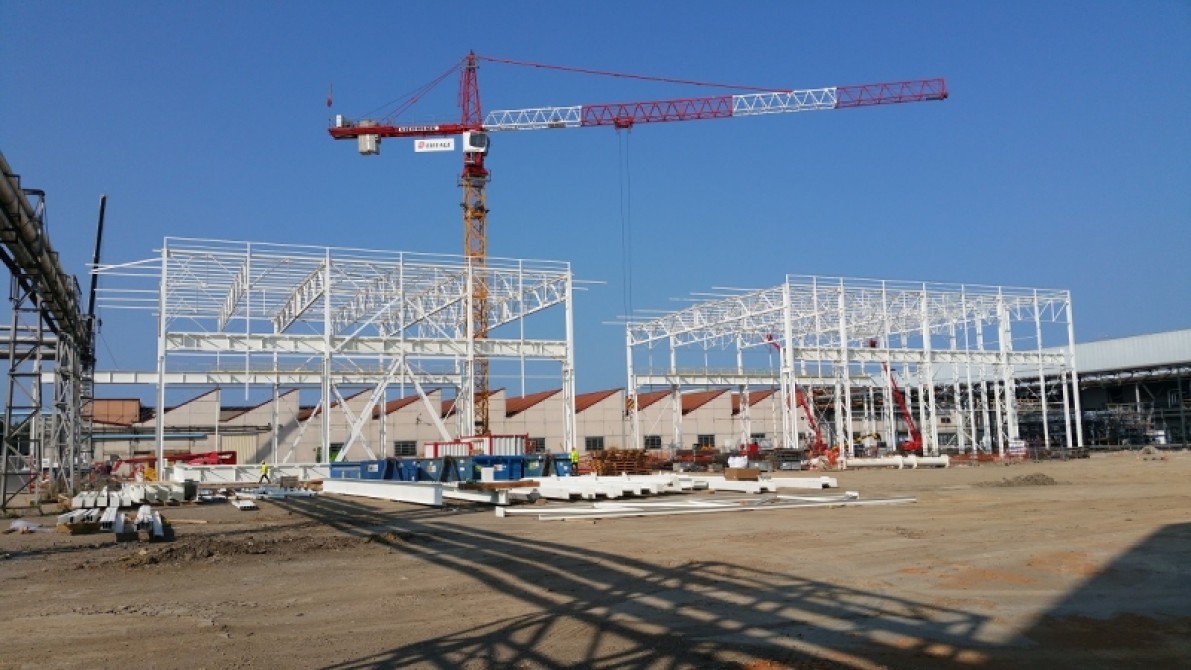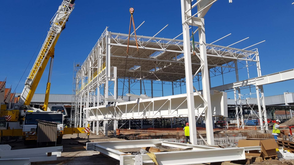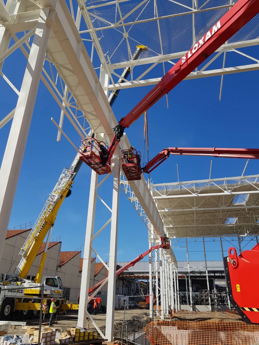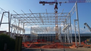 La charpente métallique fabriquée dans nos ateliers pèse 700 tonnes, incluant des chemins de roulement de 25 mètres de long.