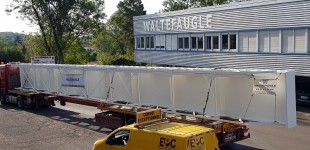 Le bâtiment quant à lui supporte 2 ponts roulants de 50 tonnes et 2 semi-portiques de 25 tonnes, le tout pour une hauteur de 20 mètres et une largeur de 38 mètres.