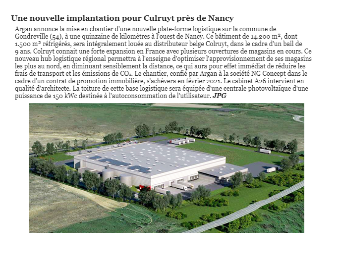 Waltefaugle réalise actuellement à Fontenoy sur Moselle une nouvelle plateforme logistique. Le projet se compose d'ossatures secondaires métalliques sur béton de l'entrepôt, d'un plot Bureaux R+1 tout métal, d'un centre de retours tout métal et d'scaliers hélicoïdaux pour accès technique.