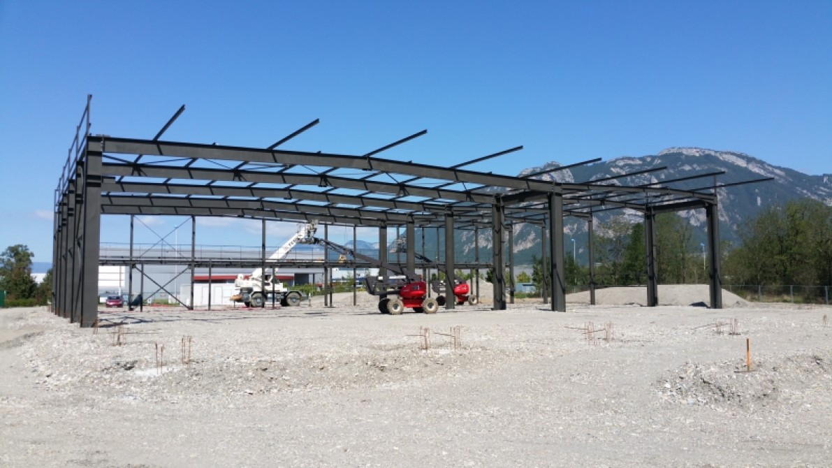 Notre entreprise a été retenue par Novelige, filiale du groupe VINCI basée à Lyon pour construire le nouveau siège social de l'entreprise Alpes Connectiques Services à Saint Helène du Lac (73). Le nouveau bâtiment du fabricant de composants électroniques s'étendra sur plus de 3000 m². Les travaux ont débuté avec la construction d'une charpente métallique qui comprend pour la zone atelier, 2 portiques accolés et pour le zone stockage un portique. La zone bureau adossée au pignon de l'atelier complète la réalisation.