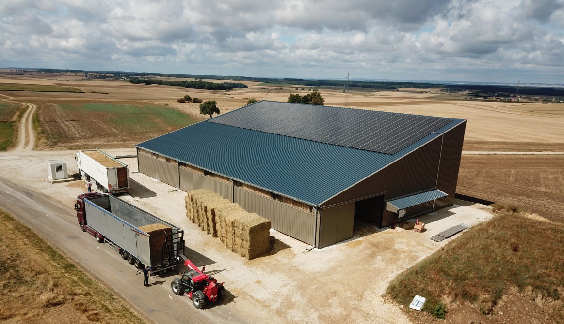 Nous sommes les premiers charpentiers à avoir construit un bâtiment agricole avec une toiture intégralement couverte de panneaux photovoltaïques en Alsace.