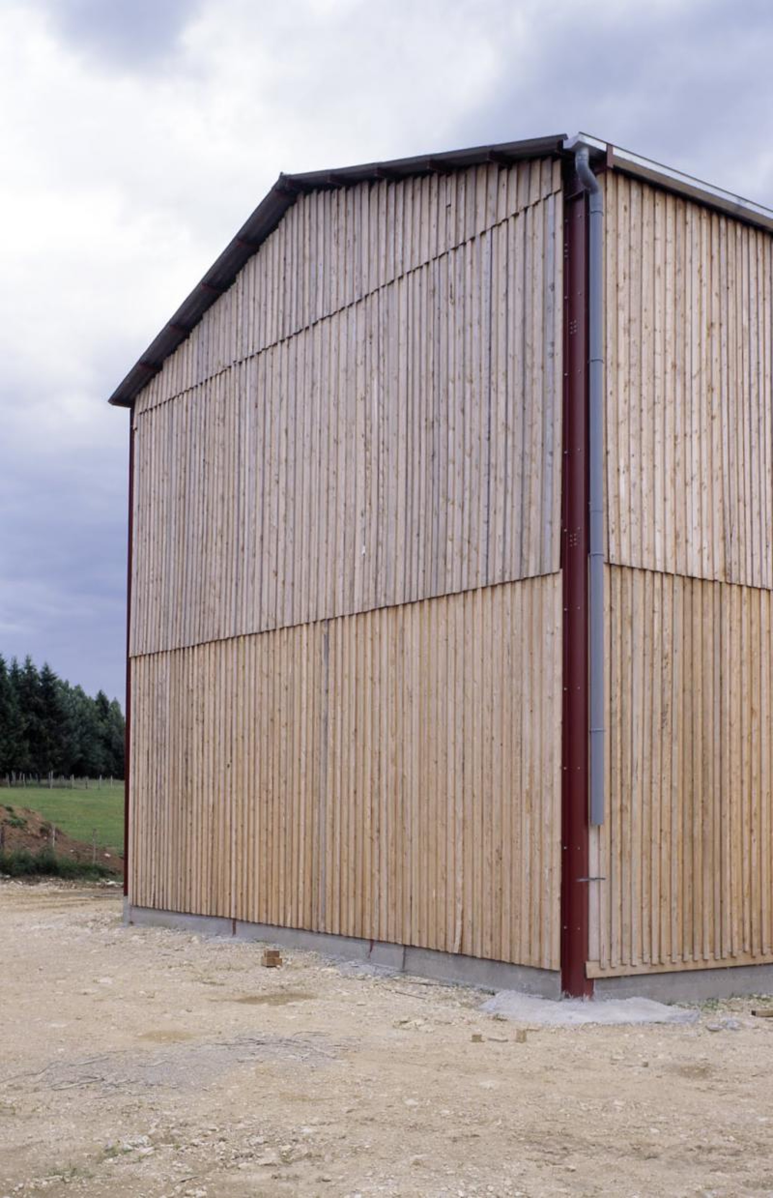 - Bardage bois à claire-voie en pin traité autoclave.