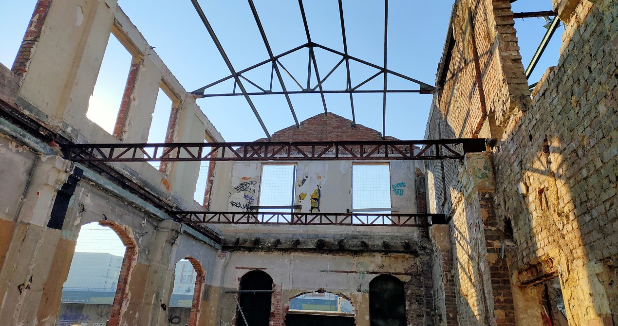 Création d'un plancher et d'une toiture dans un vieux bâtiment en brique. Adaptation de la charpente et couverture. Renforcement des ossatures pour assurer le soutien de la toiture et du plancher.