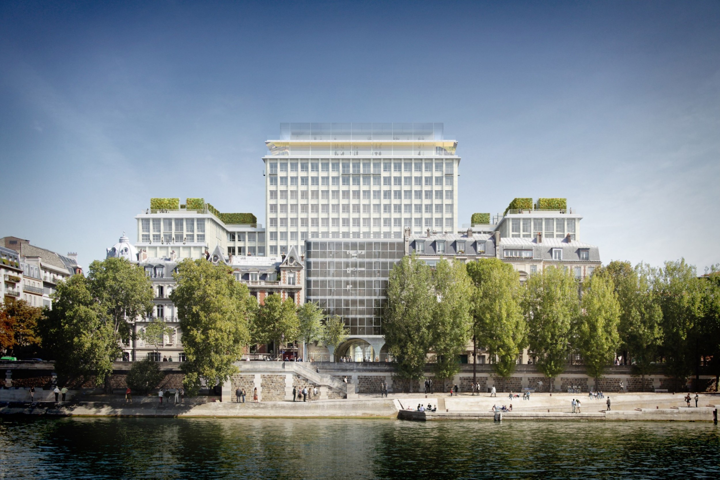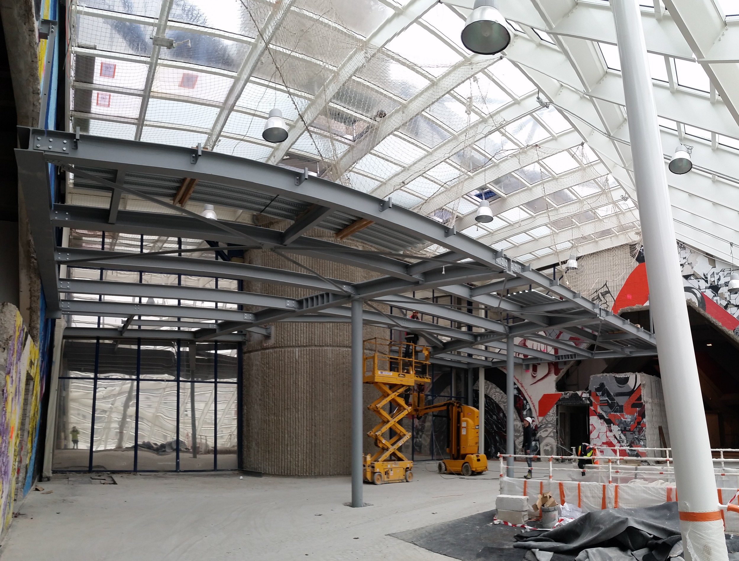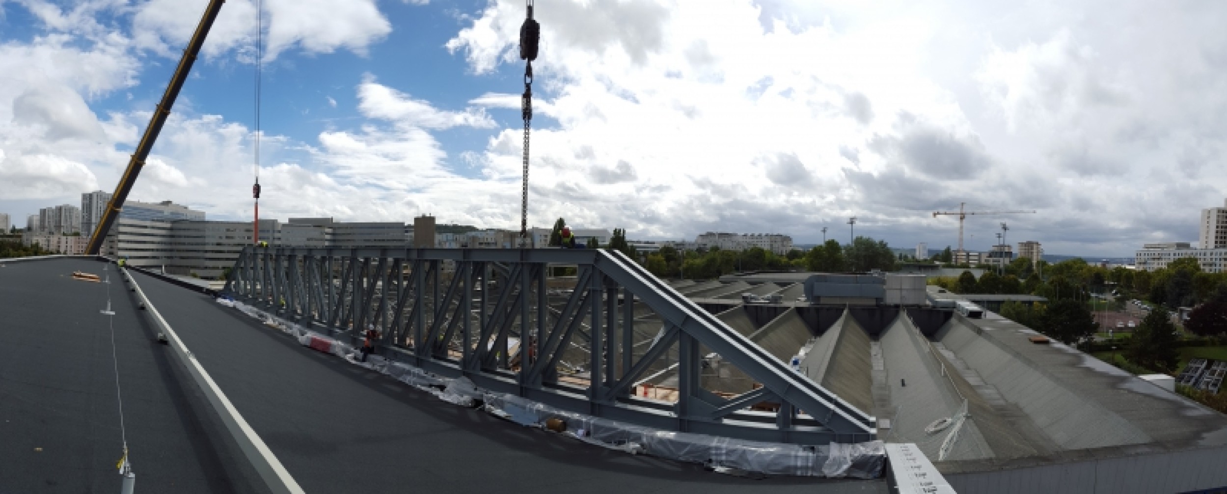Renforts en sous-oeuvre d'existant : création de 2 000 m² d'agricultures urbaines en toiture de bâtiments et création en R+16 d'une structure métallique supportant des vitrages en porte à faux