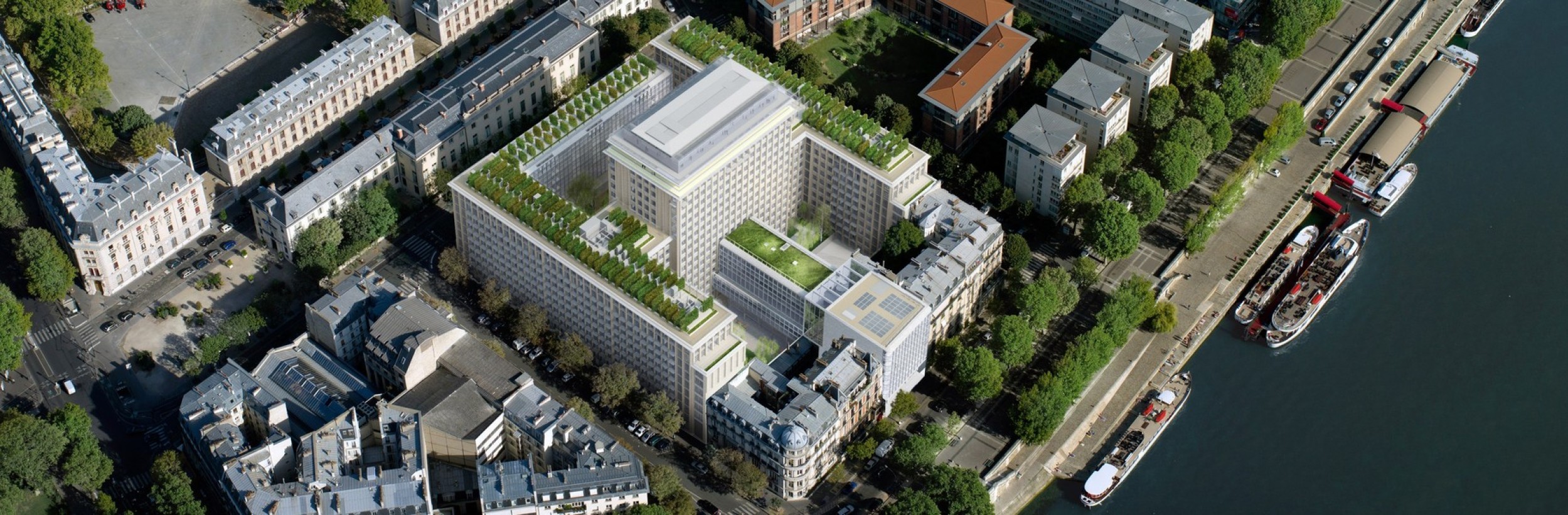 840 T d'acier en plein coeur de Paris dans un site exigu, avec le renforcement d'un bâtiment IGH de 11 étages, la ré-hausse de 3 étages d'un autre bâtiment et la construction d'un dernier bâtiment en forme de goutte d'eau / construction mixte acier / béton