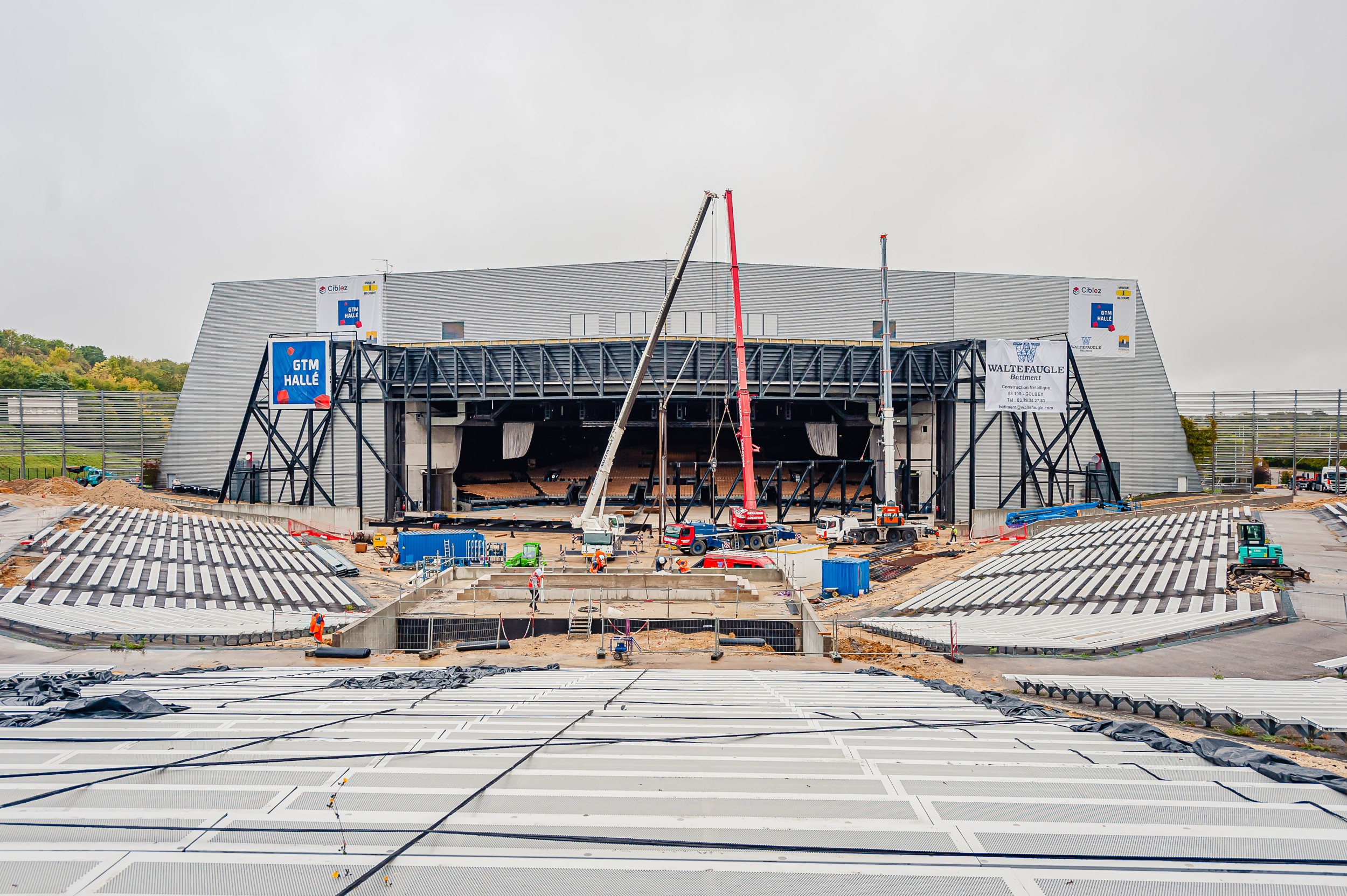 Extension du ZÉNITH avec fourniture et pose d'une passerelle en poutres treillis assemblées et ajout d'un local de 200 m2