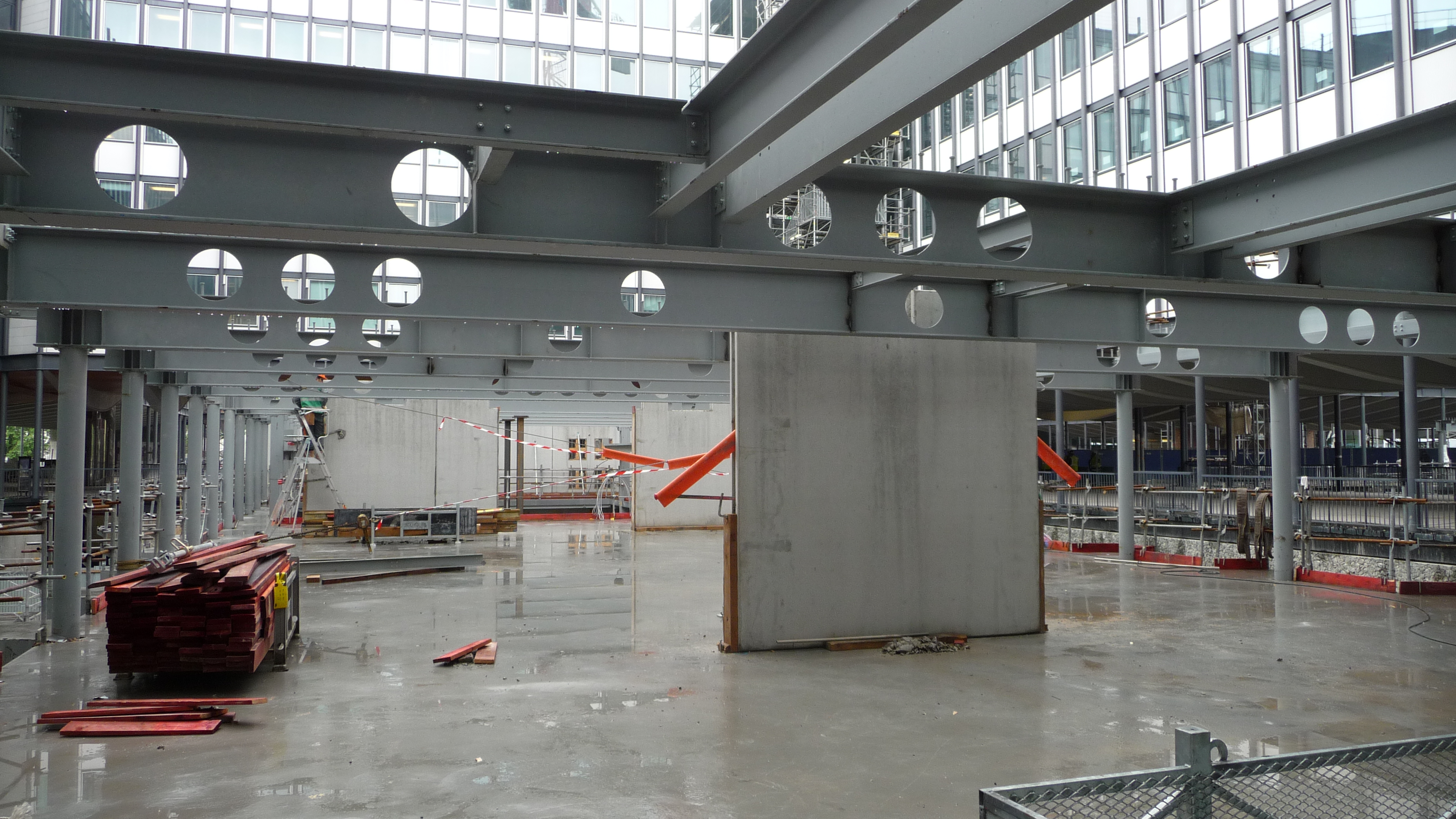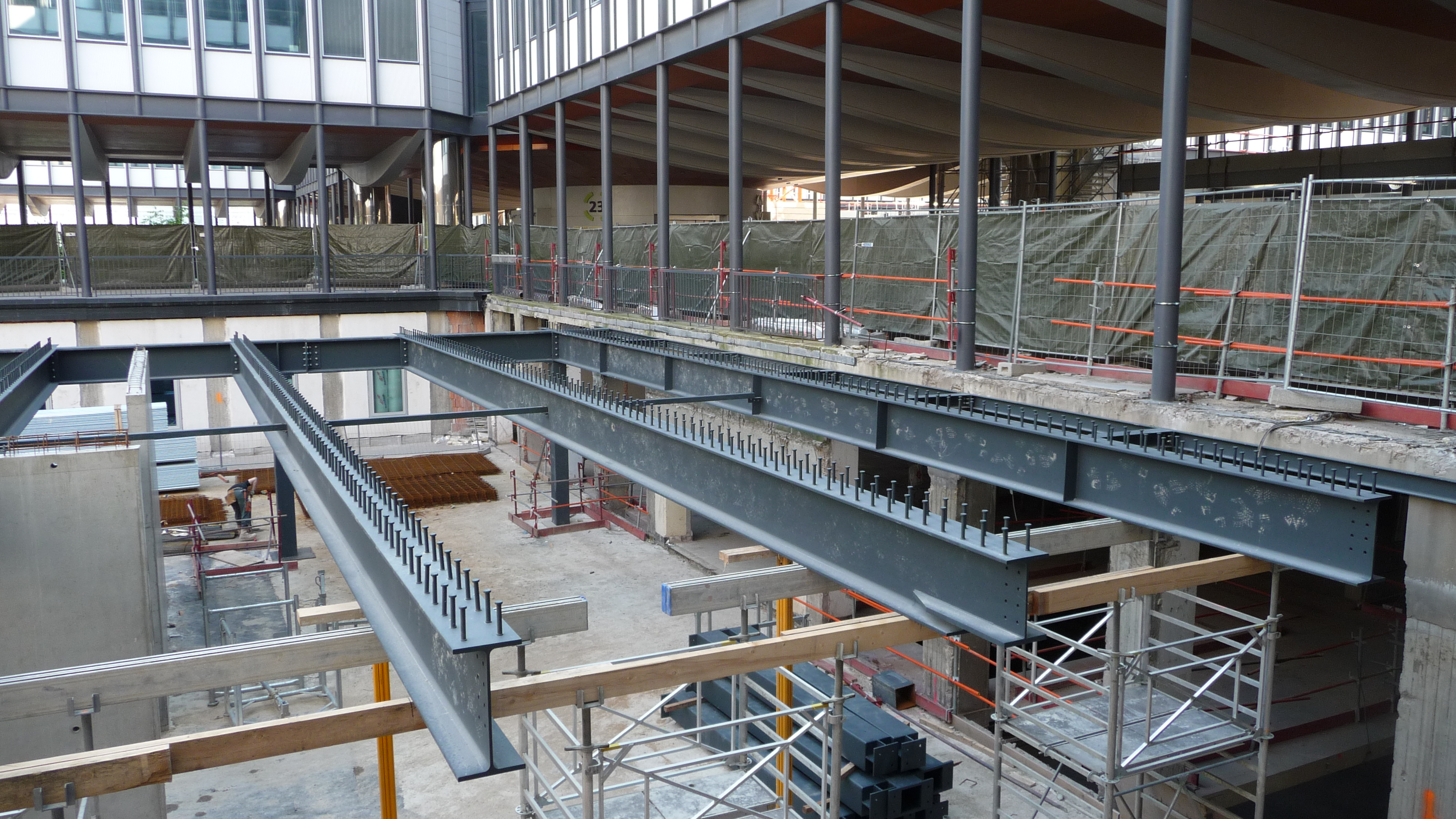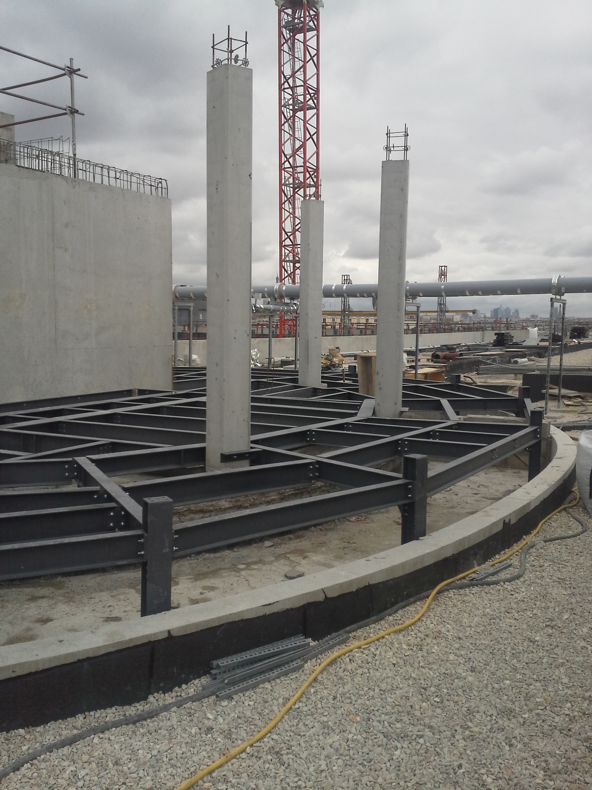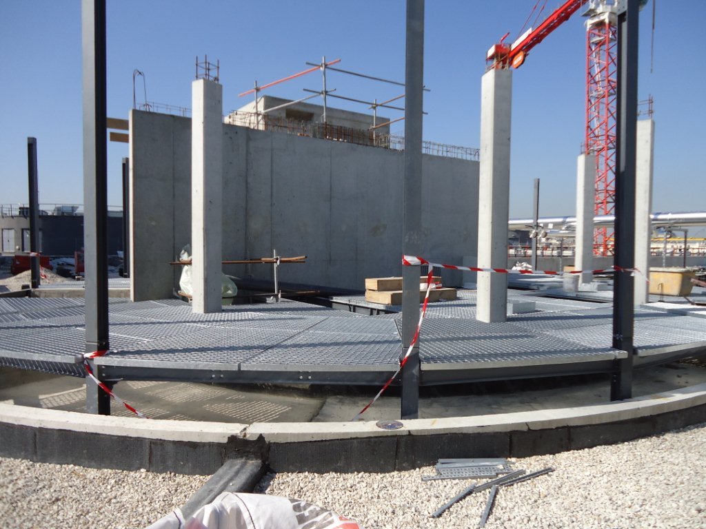 Nous sommes intervenus notamment pour la réalisation de poteaux double hauteur, de planchers en PRS à inertie variable cintrés, de plateformes métalliques, de PRS cintrés, de rotondes ainsi que la mise en place de caillebotis.