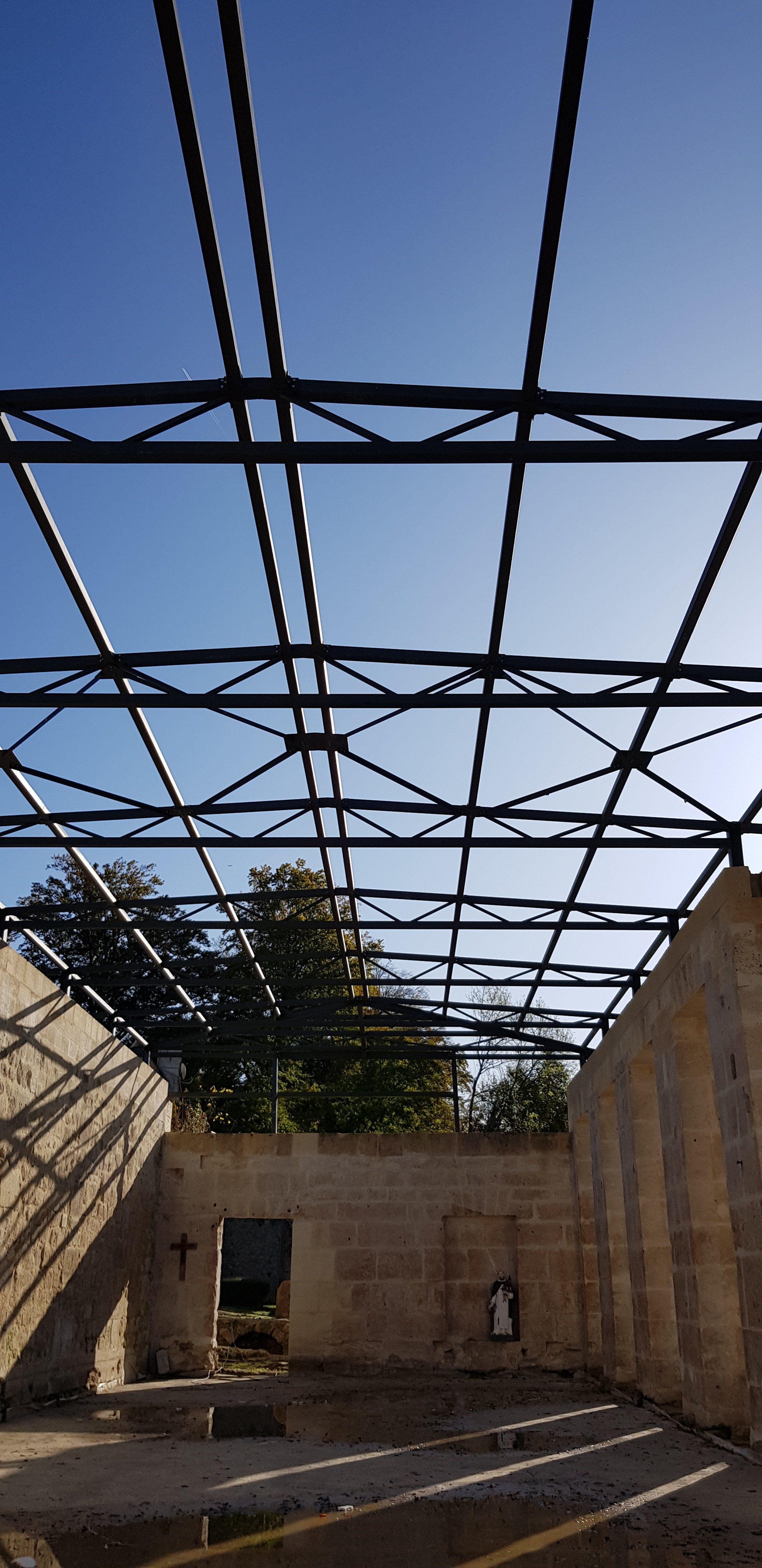- Création d’une charpente métallique pour une toiture 4 panneaux dessus de la salle capitulaire