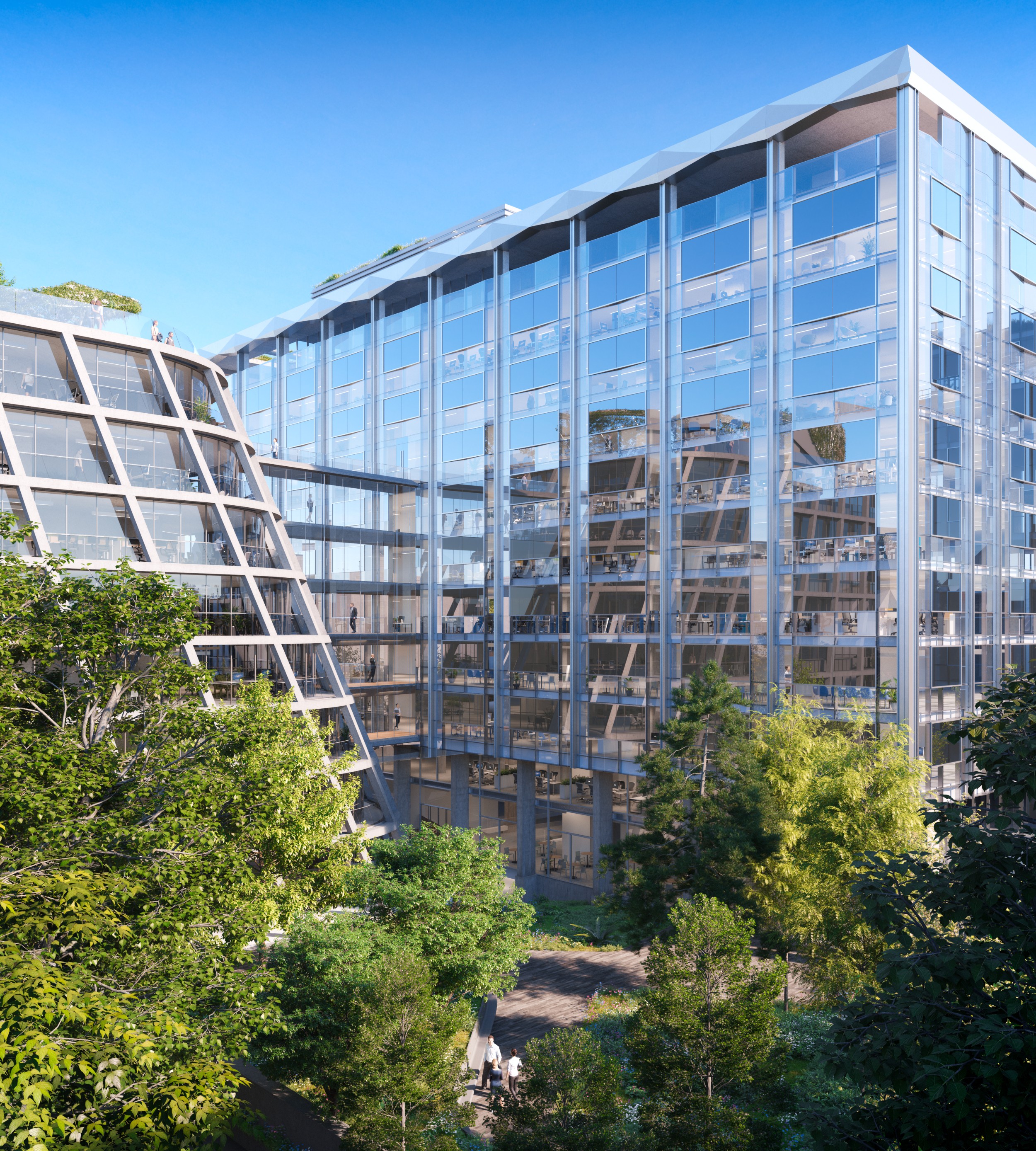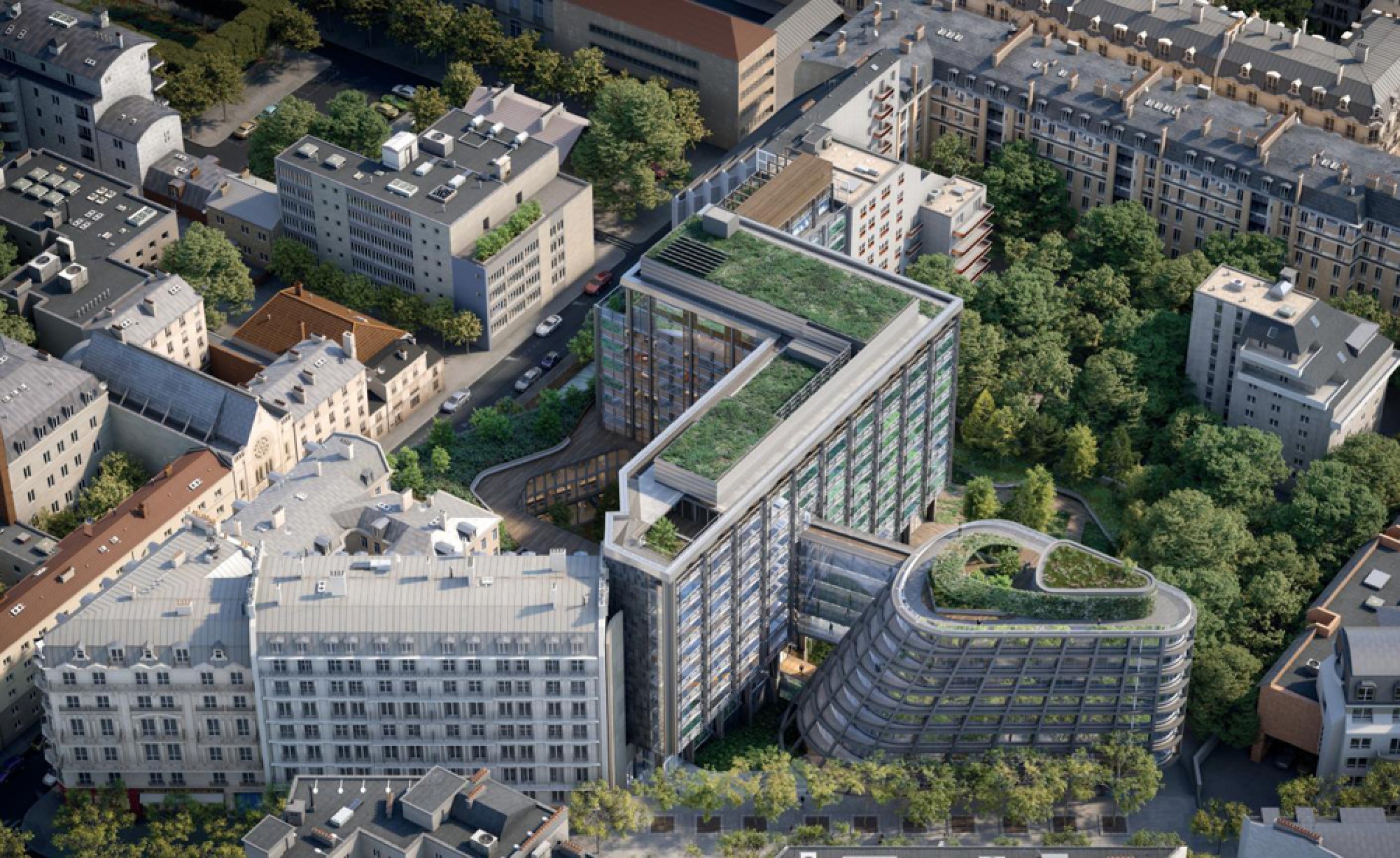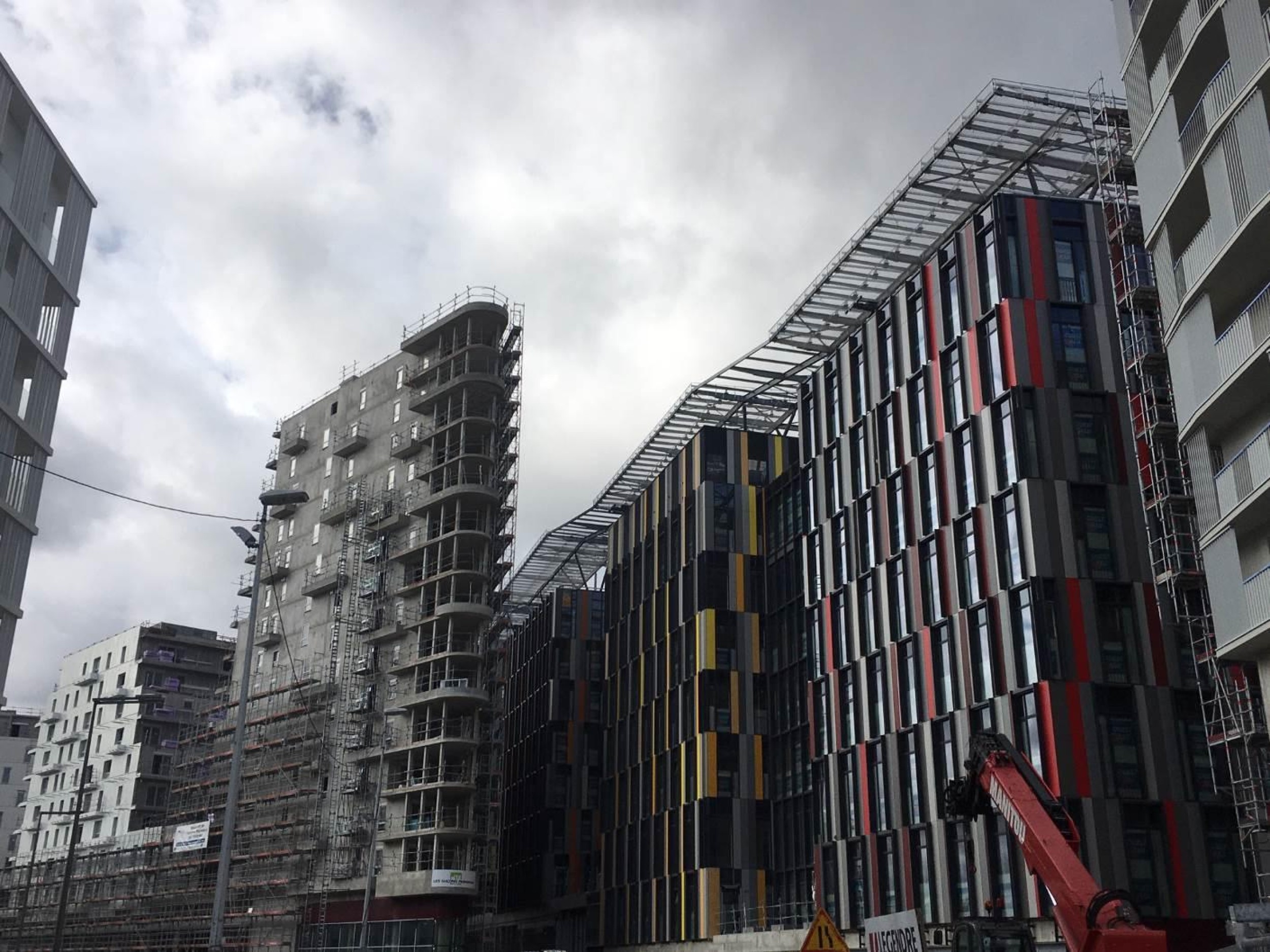 Il y a une restructuration du bâtiment existant en PH R10 et l’ajout de 2 bâtiments neufs. L’un en R+2 et l’autre en R+7.