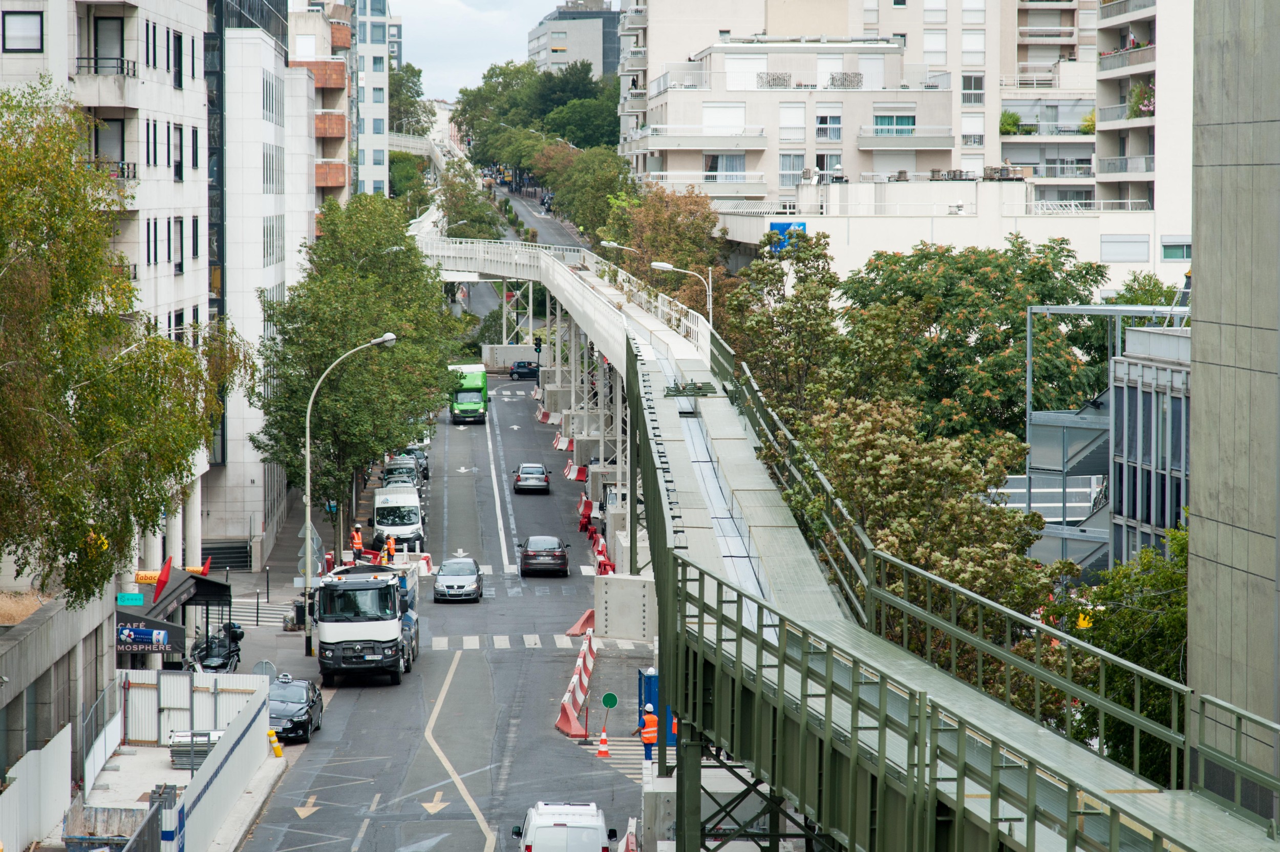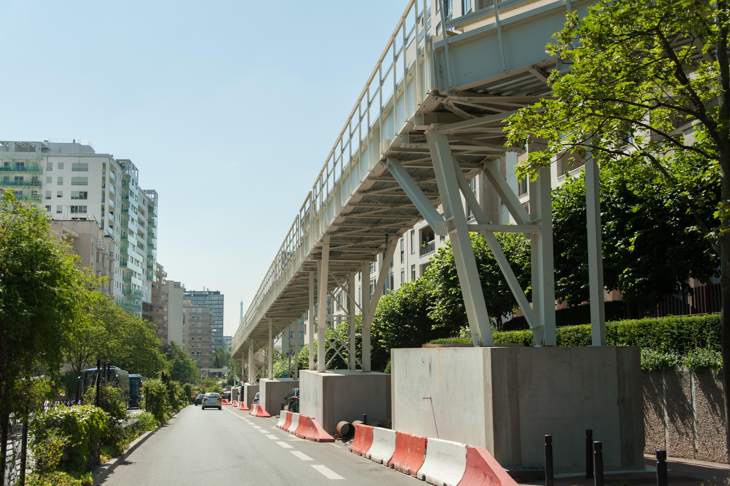 Mise en place d’une passerelle provisoire d’une longueur de 872.31m en plein centre urbain avec maintien de la circulation piétonnes, voie de bus et véhicules.