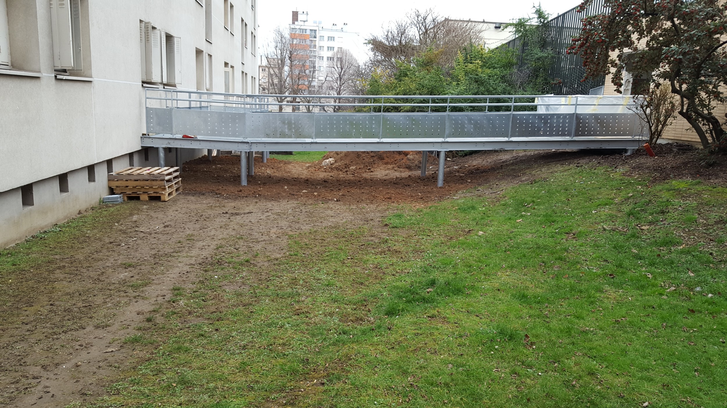 - 2 passerelles piétonnes : 4m de largeur pour environ 20m de portée réalisée en PRS.